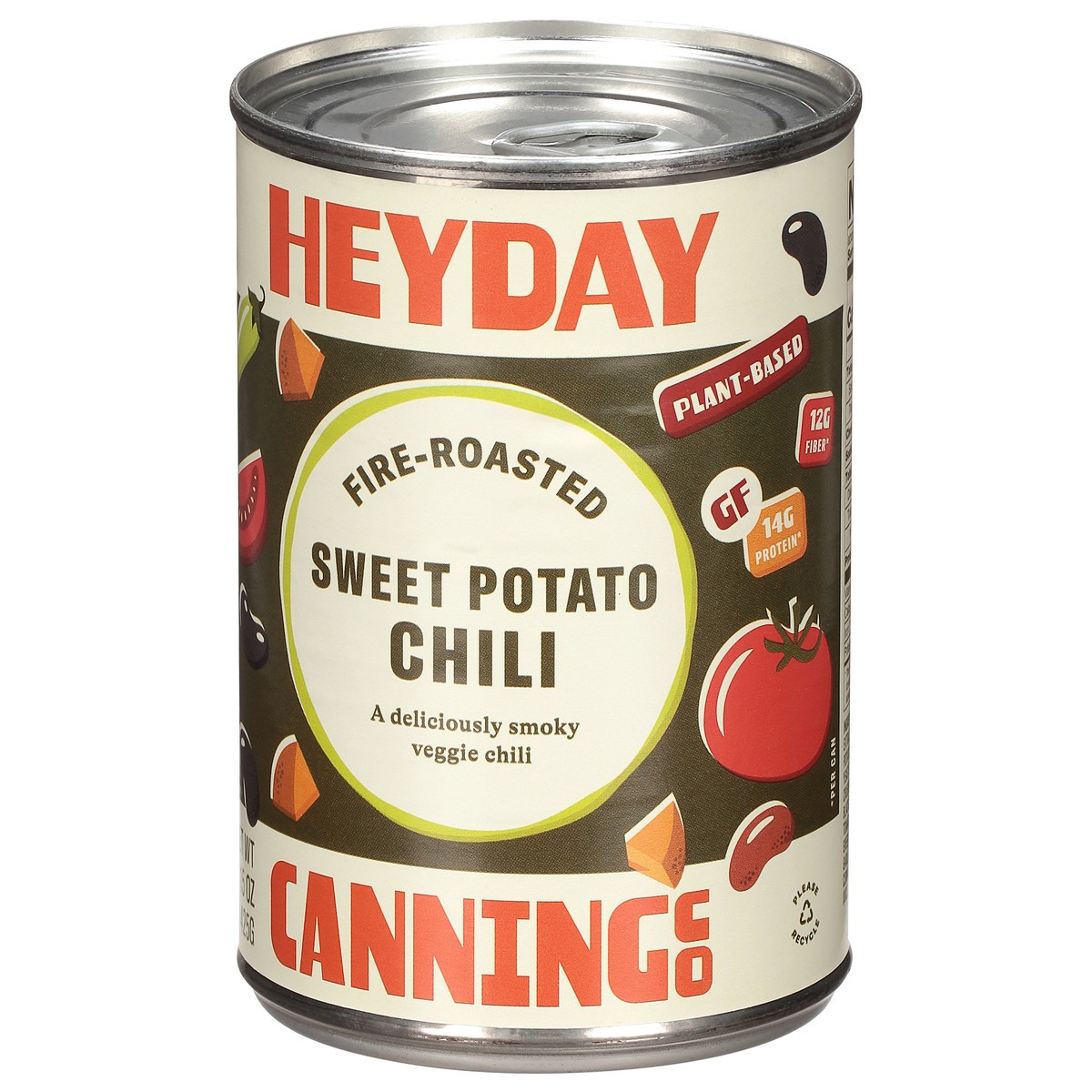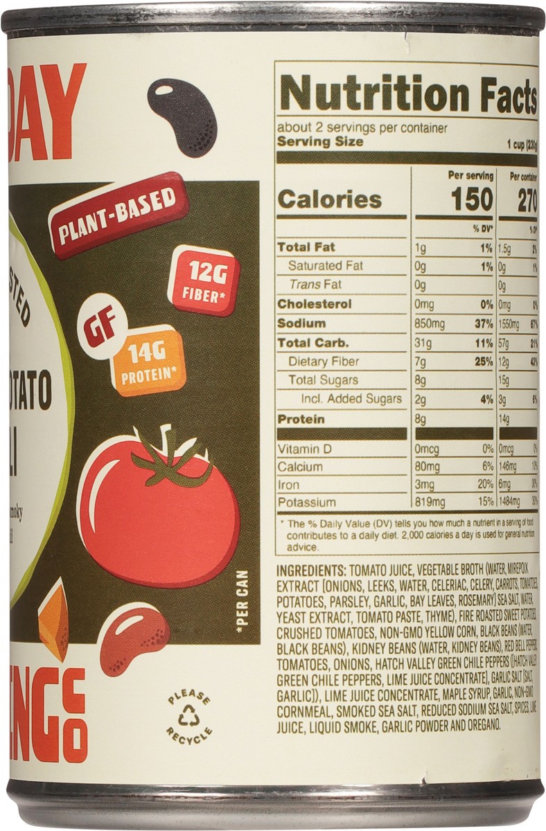 14 g protein*. 12 g fiber*. *Per can. GF. Plant-based. Fire-roasted. A deliciously smoky veggie chili. Tonight's dinner plan? Open this can. Fire-roasted Sweet Potato Chili: Aroasty toasty veggie chil…