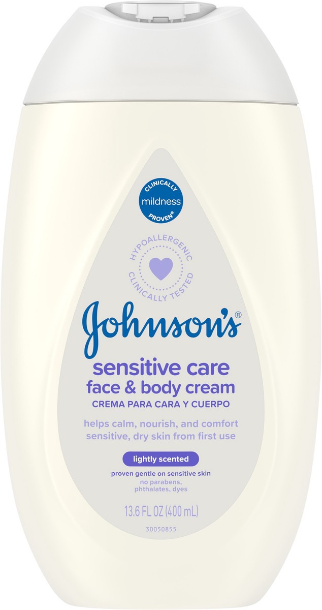 - WORLD'S #1 BABY & CHILD CARE BRAND*: Johnson's Sensitive Care Lightly Scented Face & Body Baby CreamFOR SENSITIVE SKIN: Calms