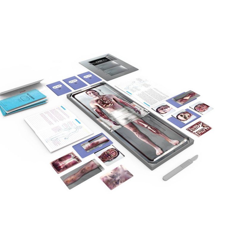 - INTERACTIVE AUTOPSY MECHANICS: Use the realistic scalpel to peel back layers of cards from specific body parts, revealing evidence and critical information buried within