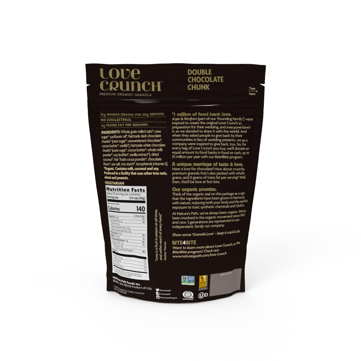 Love Crunch Double Chocolate Chunk granola puts the extra in ordinary with it’s sweet crunch and double chocolate delight. Chocolate lovers won’t be able to put this nutrient packed chocolatey granola…