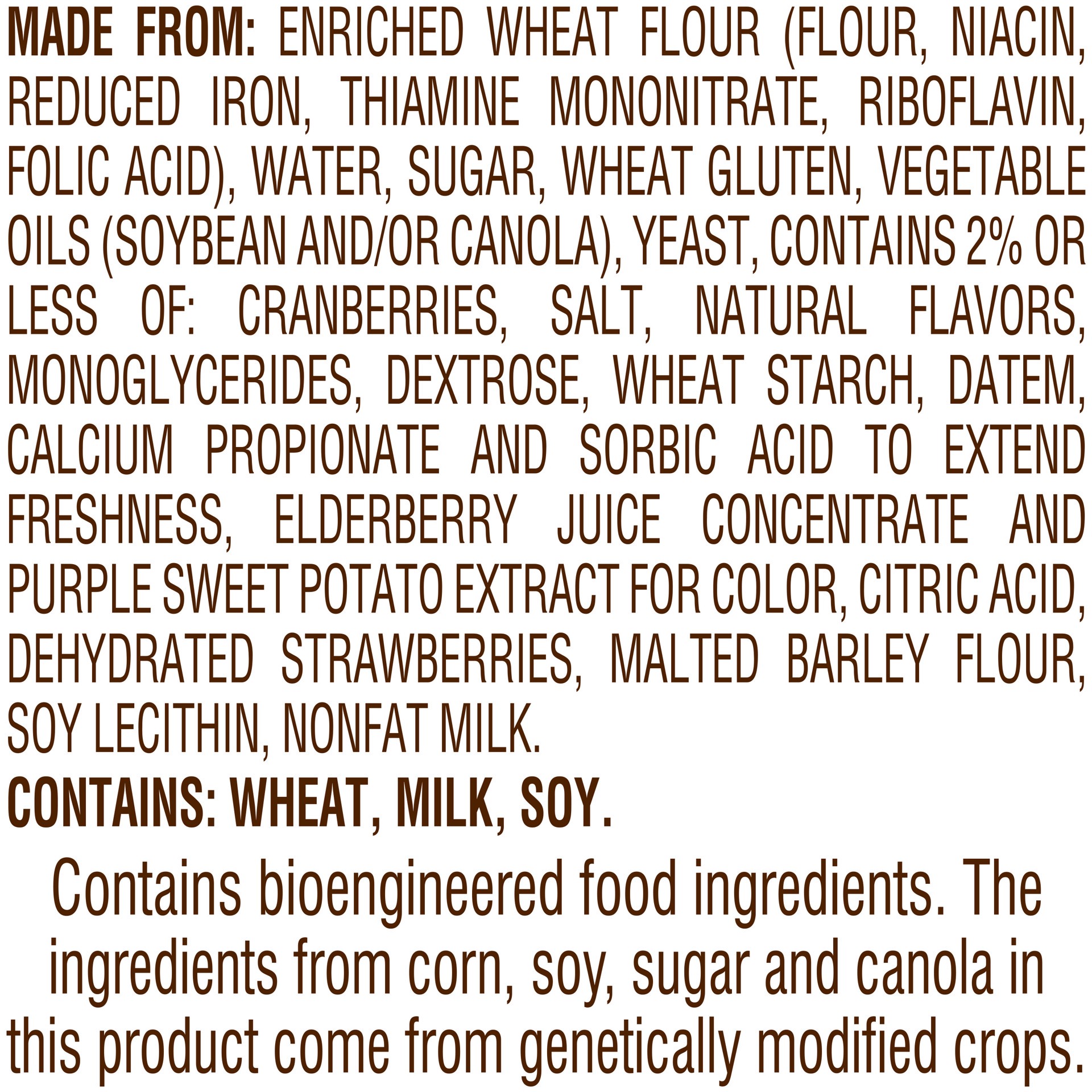 MADE FROM: ENRICHED WHEAT FLOUR (FLOUR, NIACIN, REDUCED IRON, THIAMINE MONONITRATE, RIBOFLAVIN, FOLIC ACID), WATER, SUGAR, WHEAT GLUTEN, VEGETABLE OILS (SOYBEAN AND/OR CANOLA), YEAST, CONTAINS 2% OR L…
