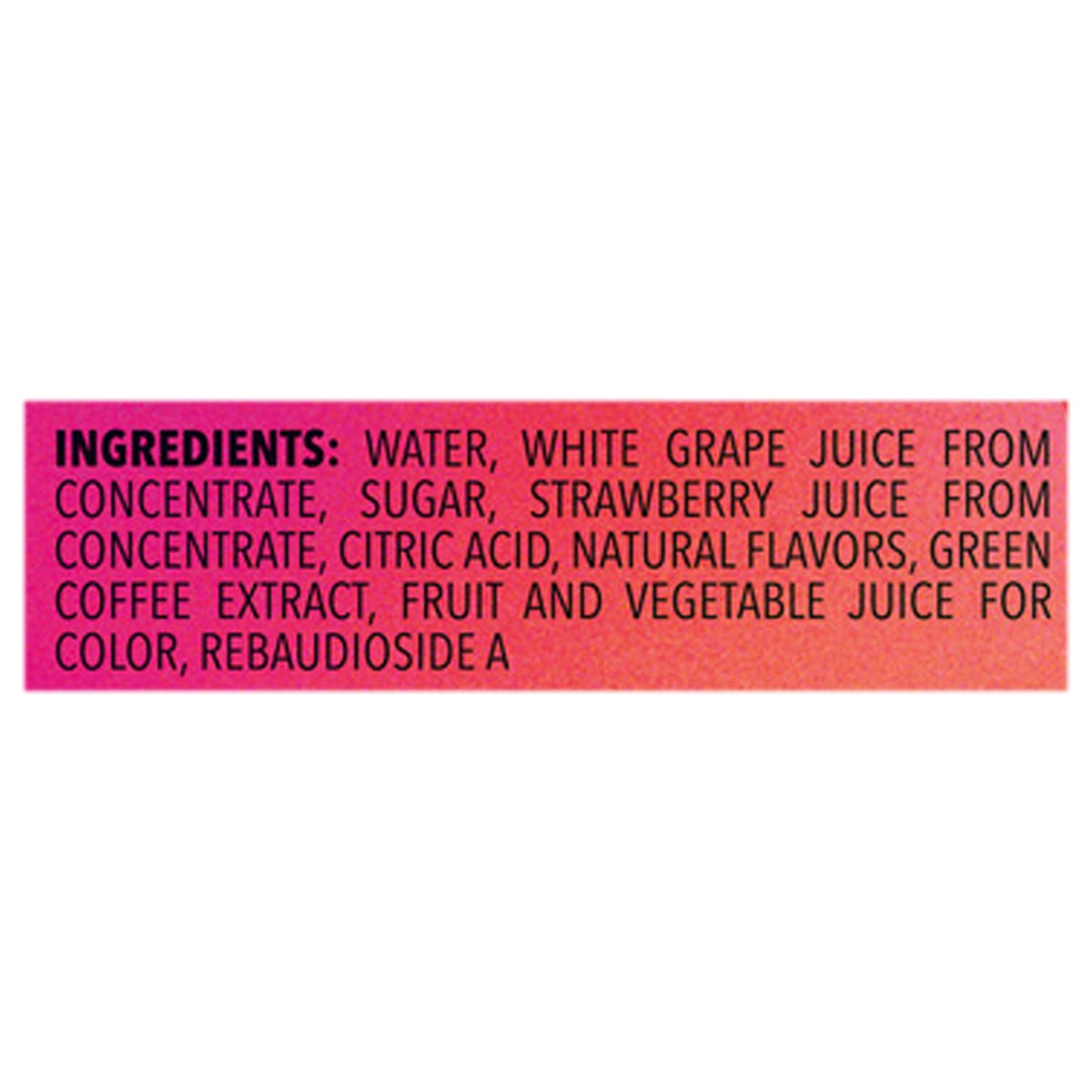 Water, White Grape Juice from Concentrate, Sugar, Strawberry Juice from Concentrate, Citric Acid, Natural Flavors, Green Coffee Extract, Fruit and Vegetable Juice for Color, Rebaudioside A.
