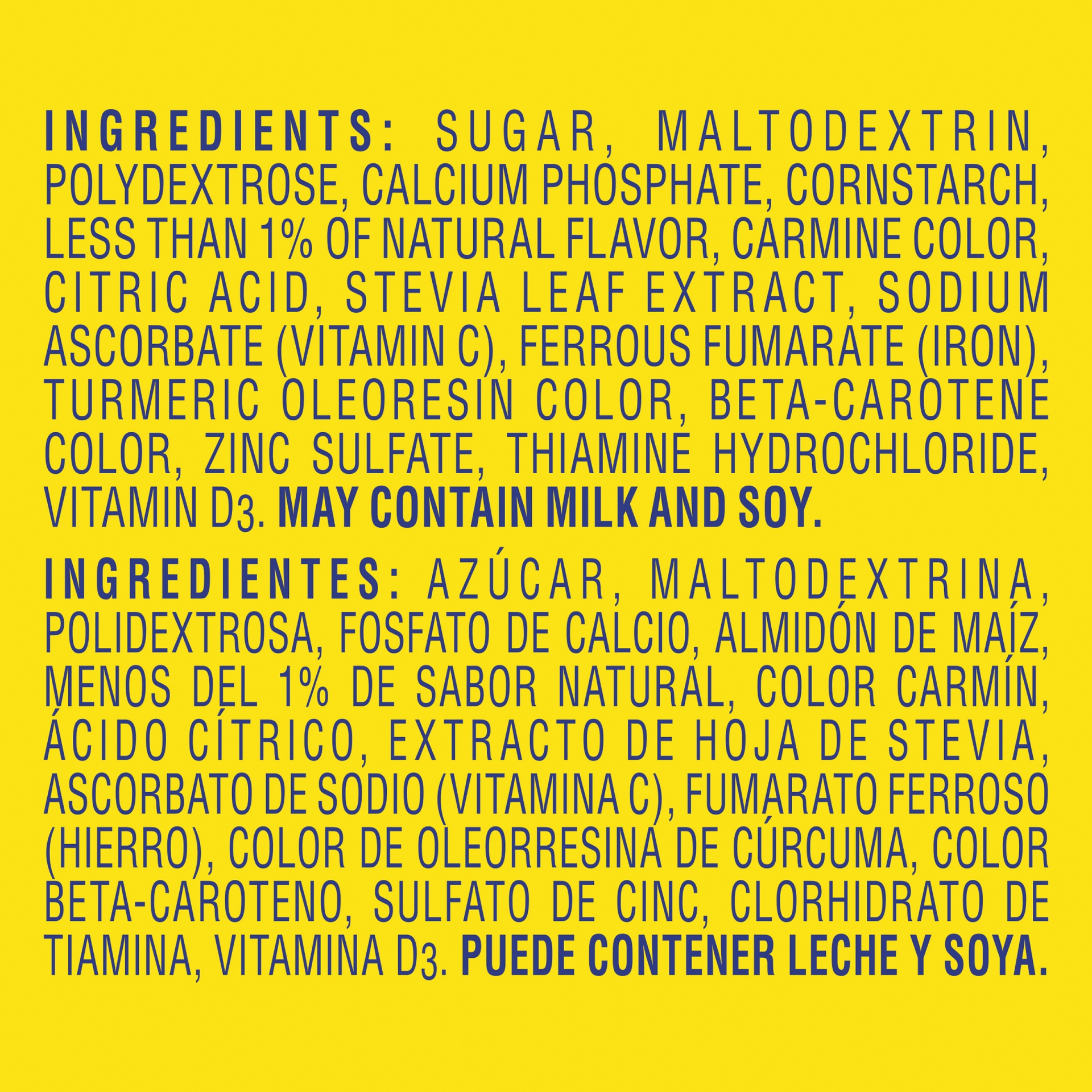 Sugar, Maltodextrin, Polydextrose, Calcium Phosphate, Cornstarch, Less than 2% of Natural Flavor, Tricalcium Phosphate, Citric Acid, Sodium Ascorbate (Vitamin C), Ferrous Fumarate (Iron), Glucose Syru…