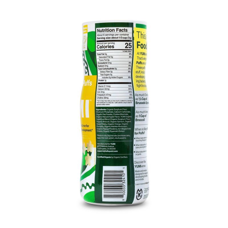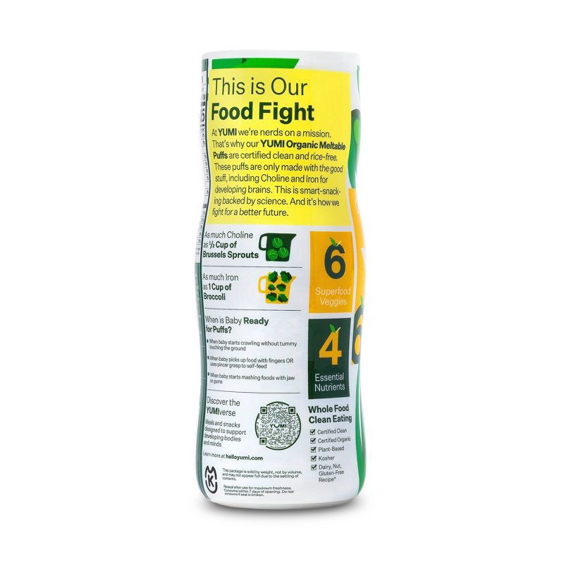 YUMI Sweet Pea Organic Puffs are certified clean and ricefree. These picky eater approved puffs are only made with the good stuff, including Choline and Iron for developing brains. When is your baby r…