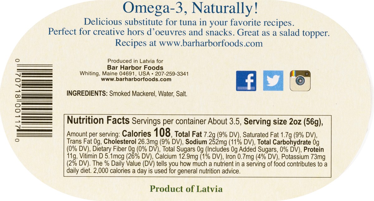 Omega-3, naturally. Ready to eat protein. Naturally wood smoked. Harvested from the clear, cold waters of the north sea. Bar Harbor brings the sea to you! Delicious substitute for tuna in your favorit…