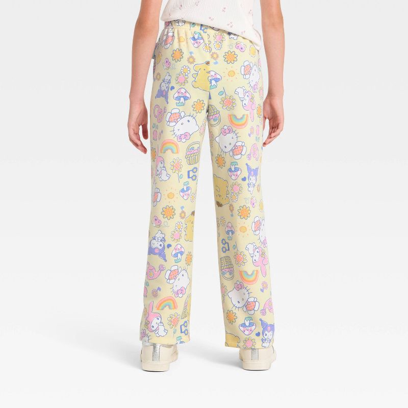 Sanrio Girls' Hello Kitty and Friends Printed Fleece Wide Leg Sweatpants - Light Yellow L