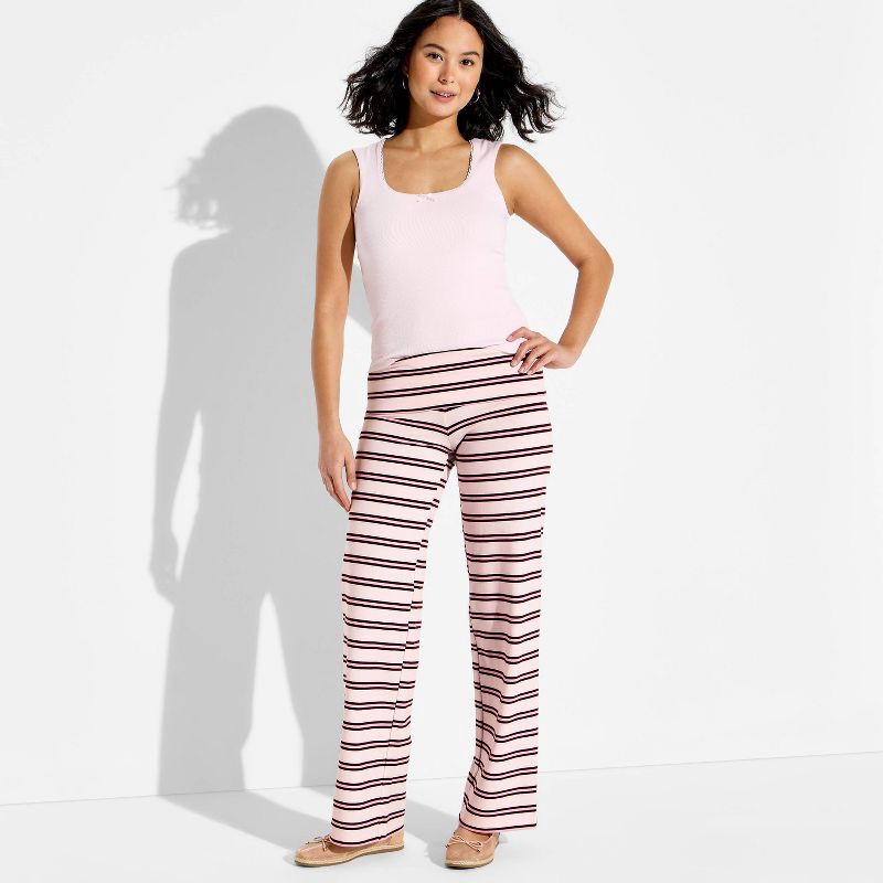 Women's Soft Cotton Low-Rise Straight Leg Pull-On Pants - Wild Fable™ Pink Striped XXS