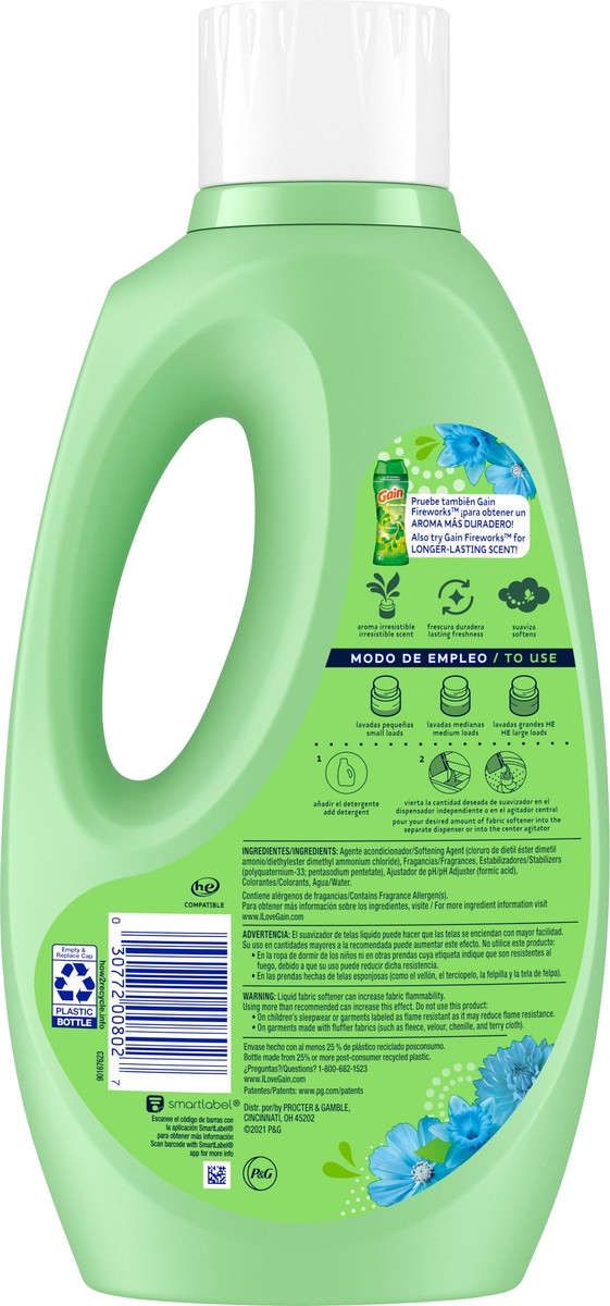 Gain Suavizante Liquid Fabric Conditioner, 58 loads, 50 fl oz, Blue Blossoms