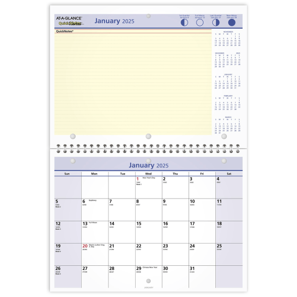 Plan for what’s to come with the 2025 AT-A-GLANCE QuickNotes Monthly Wall Calendar. The monthly spreads include unruled daily blocks and reference calendars to help make planning a breeze. 12 months: …