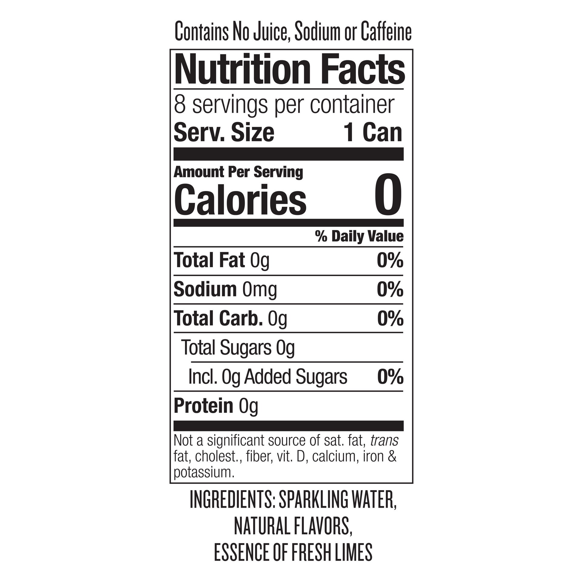 Sparkling Water, Natural Flavors, Essence of Fresh Limes.