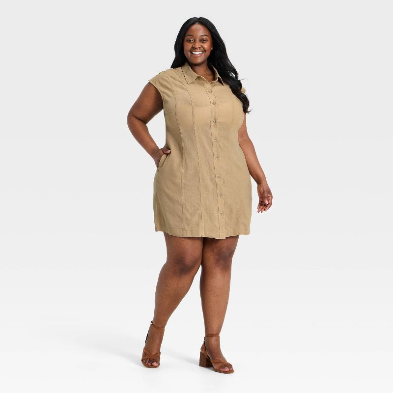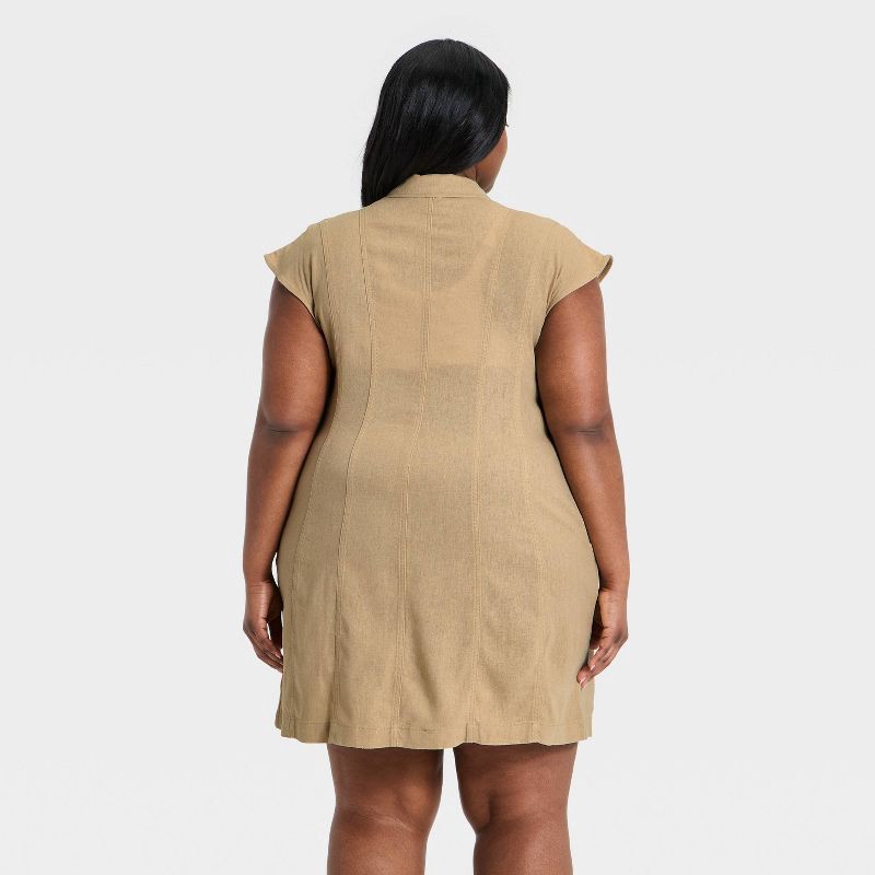 Women's Short Sleeve Mini Shirt Dress - Universal Thread™ Tan XXL