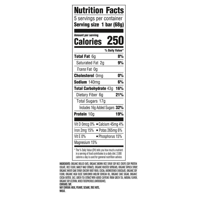 Organic Rolled Oats, Organic Brown Rice Syrup, Soy Rice Crisps (Soy Protein Isolate, Rice Flour, Barley Malt Extract), Organic Roasted Soybeans, Organic Tapioca Syrup, Organic Invert Cane Syrup, Chico…