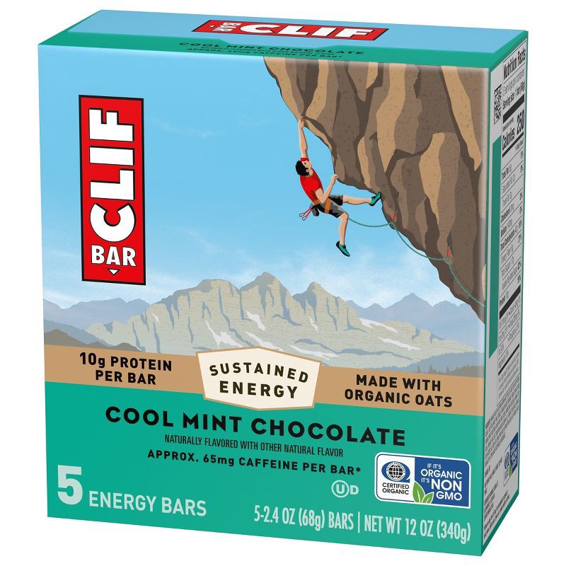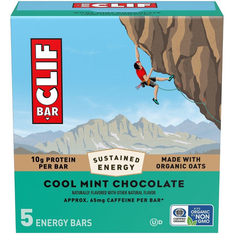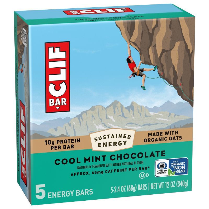 - COOL MINT, RICH CHOCOLATE: Includes one 5-pack box of Cool Mint Chocolate energy bars made with refreshing mint, sustainably sourced chocolate, and a boost of caffeine (packaging may vary)