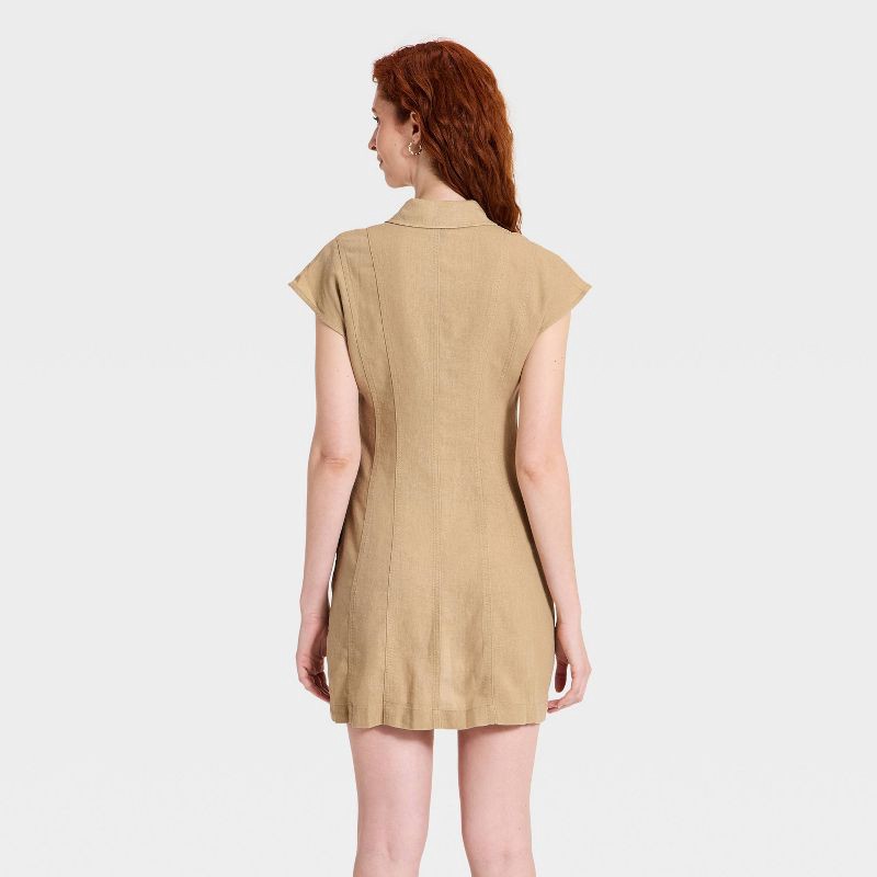 Women's Short Sleeve Mini Shirt Dress - Universal Thread™ Tan L