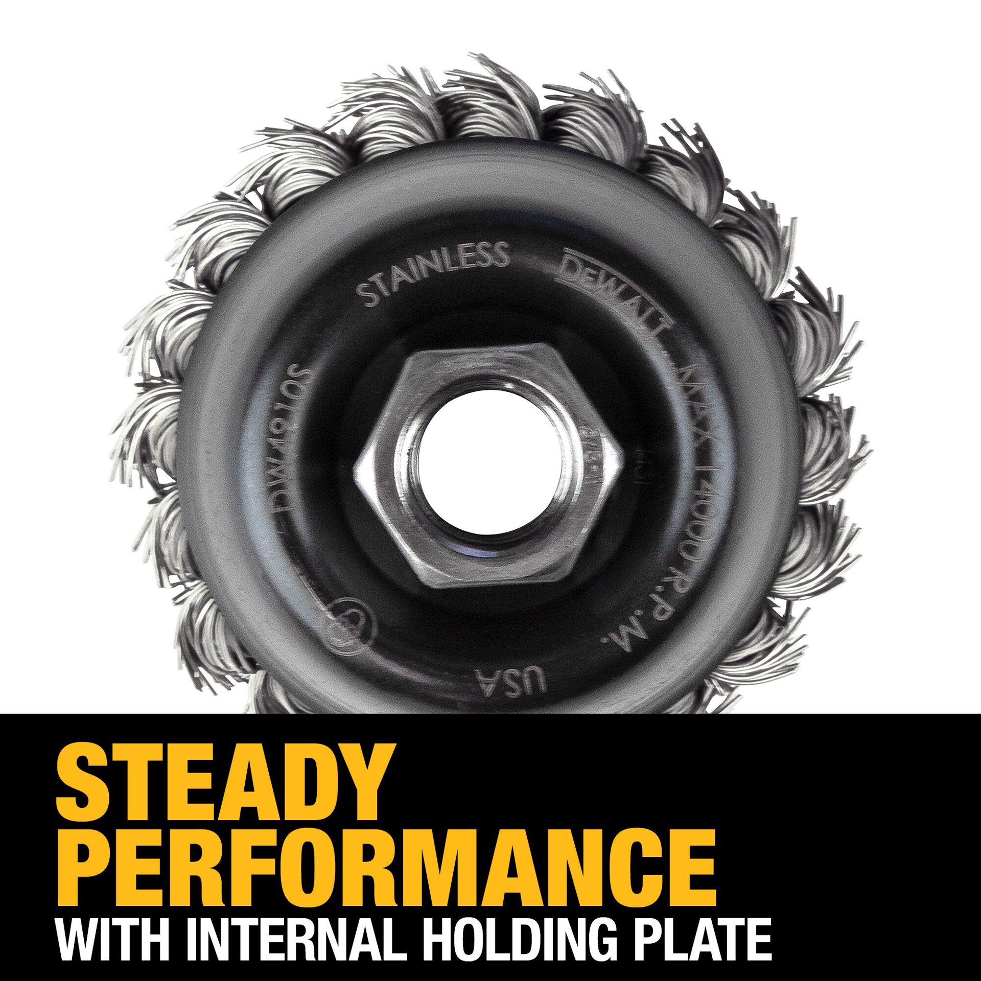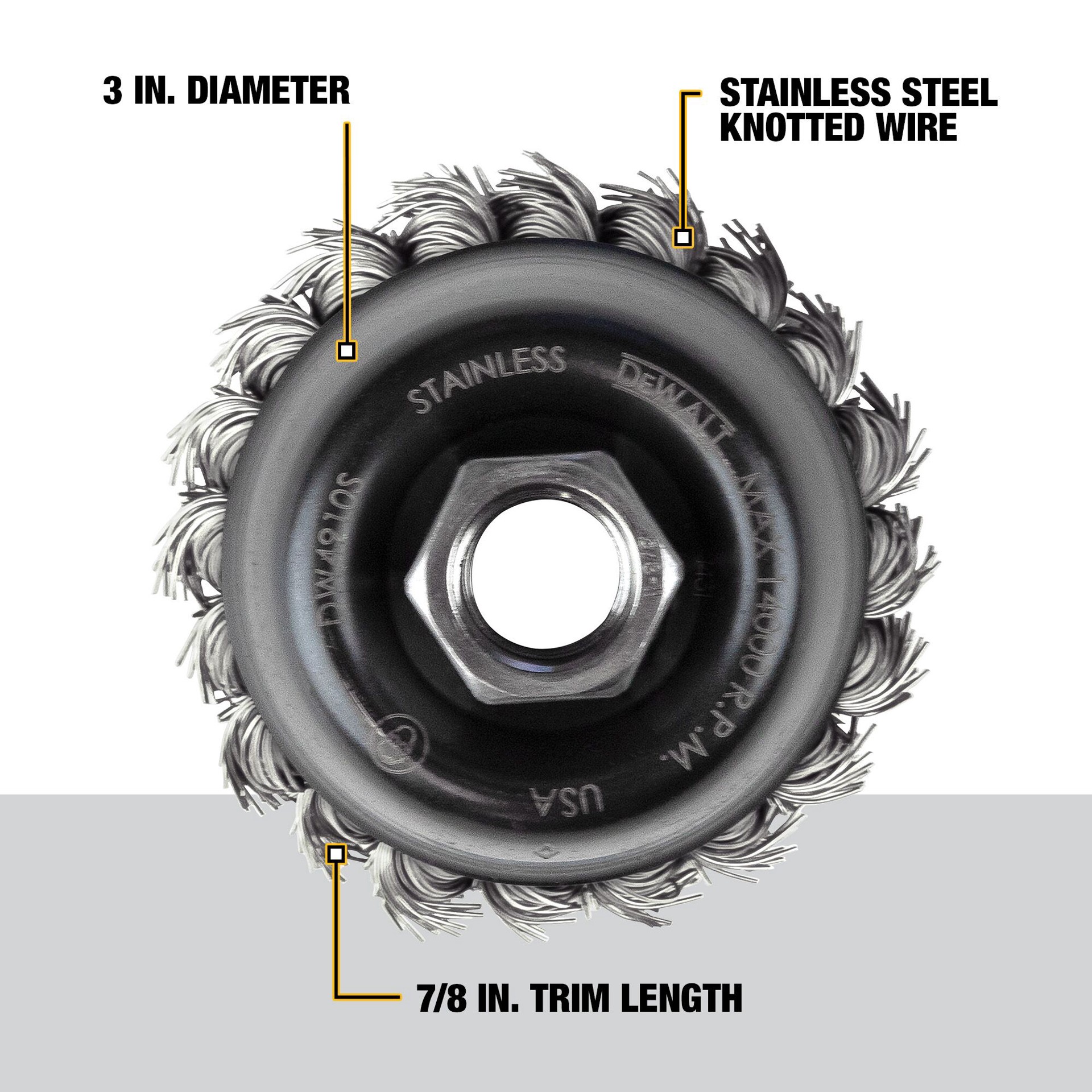 Constructed with internal holding plate to ensure consistency and safety. Wire is 100% inspected to meet demanding quality specifications. DEWALT 3-In X 5/8-In High Performance Stainless Steel Knottedā¦