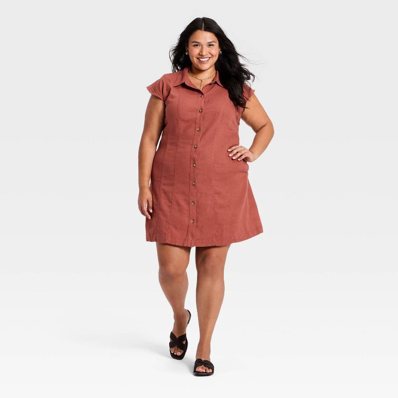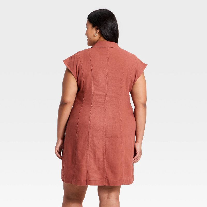 Women's Short Sleeve Mini Shirt Dress - Universal Thread™ Rust XXL