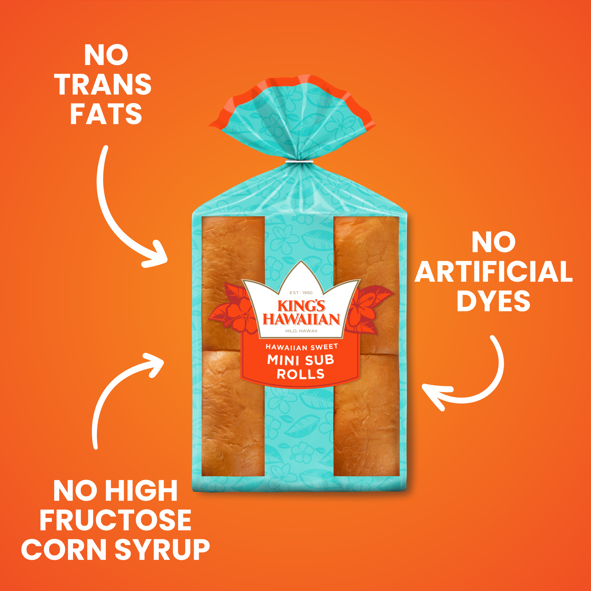 Enjoy the delicious taste of KING'S HAWAIIAN Original Hawaiian Sweet Mini Sub Rolls. This original Hawaiian sweet bread recipe is rolled into an authentic Hawaiian sweet sub roll. KING'S HAWAIIAN mini…