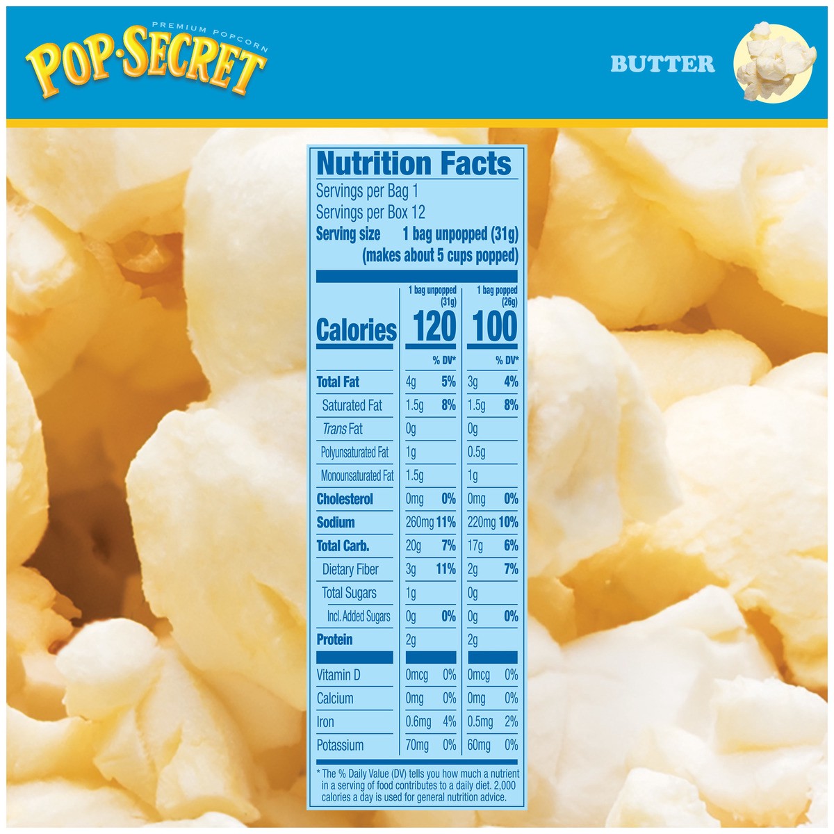 Popcorn fanatics love the delicious buttery taste of Pop Secret Butter Flavor popcorn. What''s our secret for the best popcorn? Kernels popped up light and fluffy with delicious buttery flavor and an …