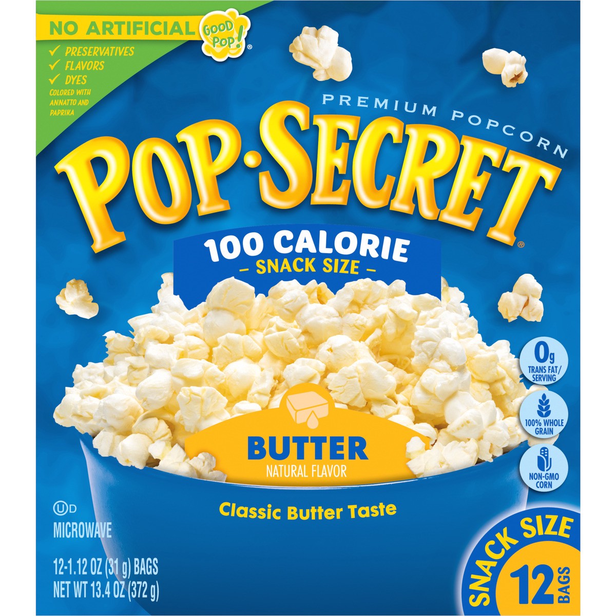 Pop-Secret Microwave Popcorn, 100 Calorie Butter Flavor, 1.1 oz Snack Bags, 12 ct