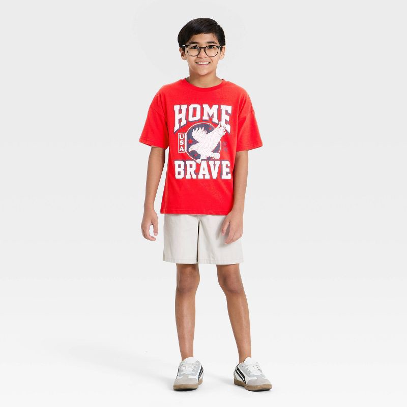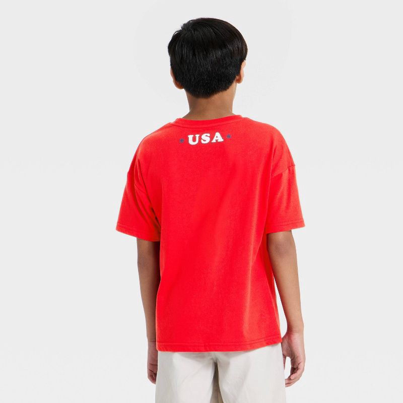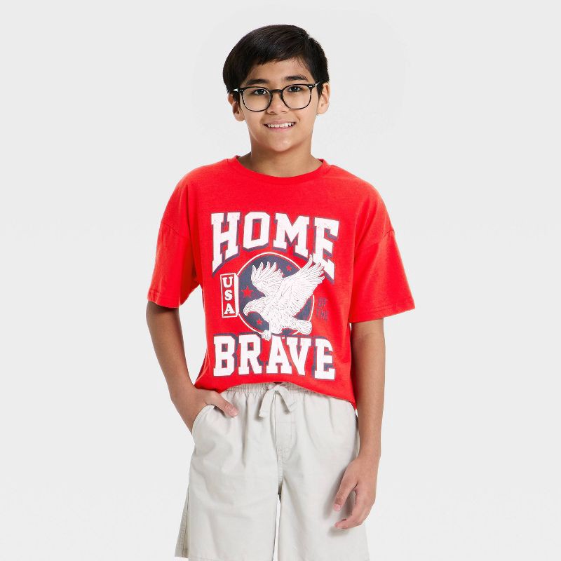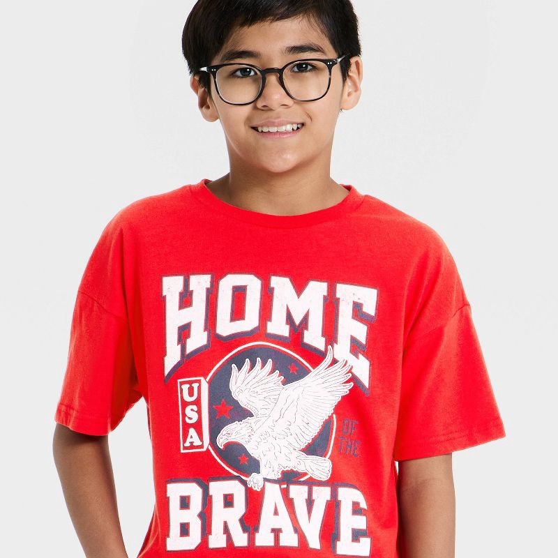 Boys' Bioworld Americana USA 'Home of the Brave' Short Sleeve Oversized Graphic T-Shirt - Red M