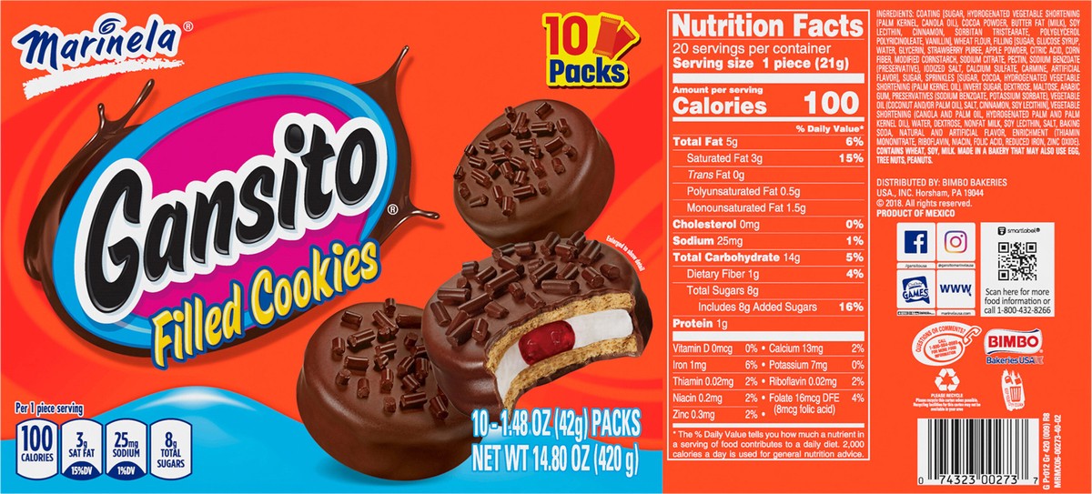 Marinela Gansito Strawberry and Crème Filled Cookies, 10 packs, Cookies, 14.8 oz Multipack