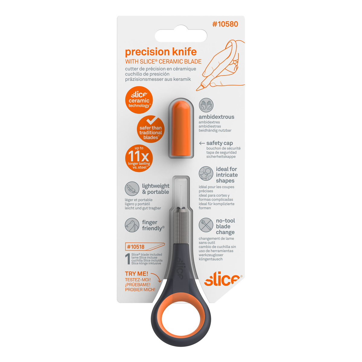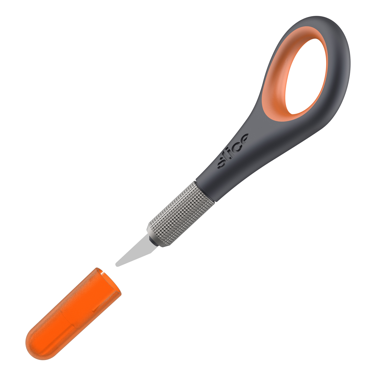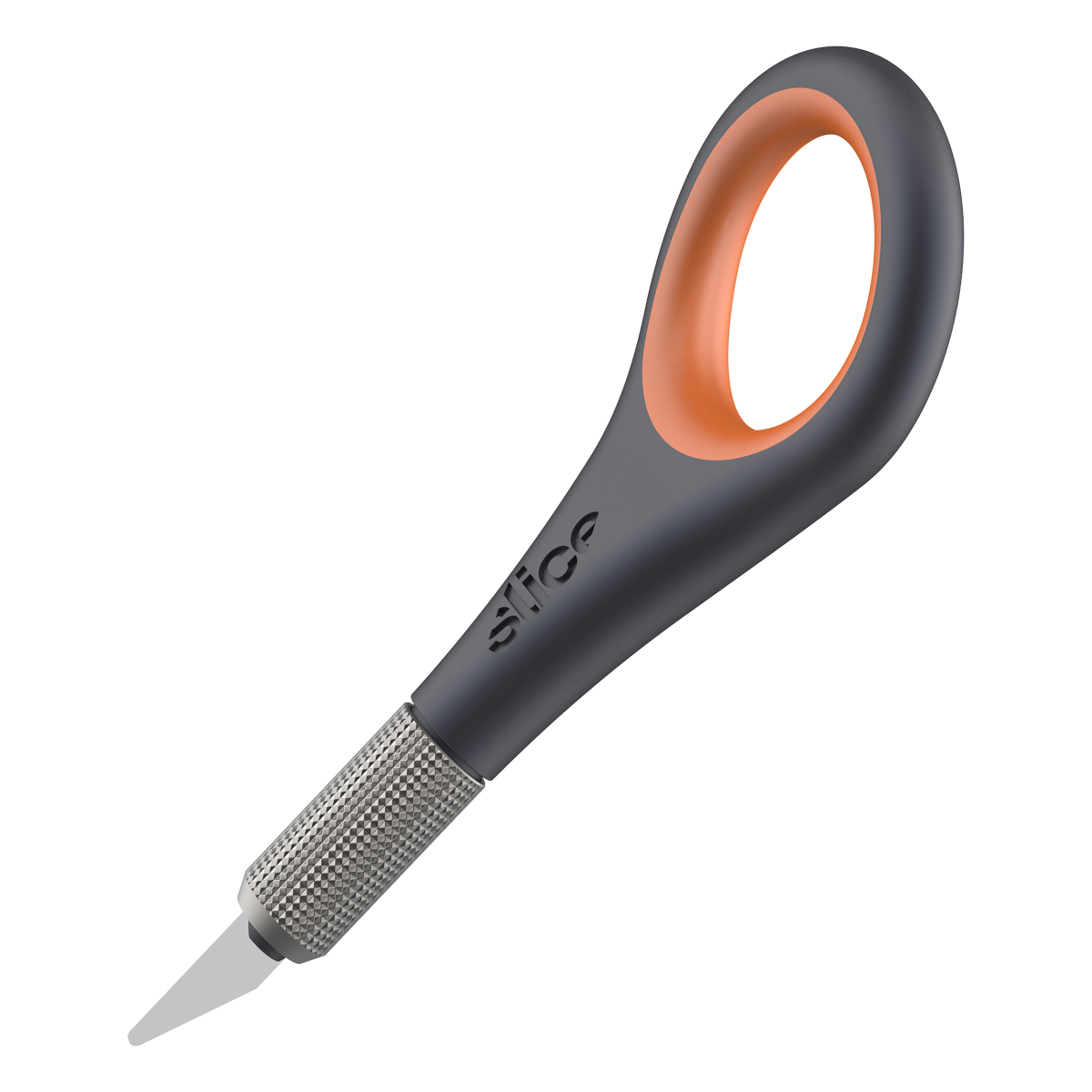 "The Slice® Precision Knife makes cutting intricate shapes easier, safer and more comfortable. The tool has an innovative soft and angled finger hole optimized for comfort and steadiness and a cross-h…