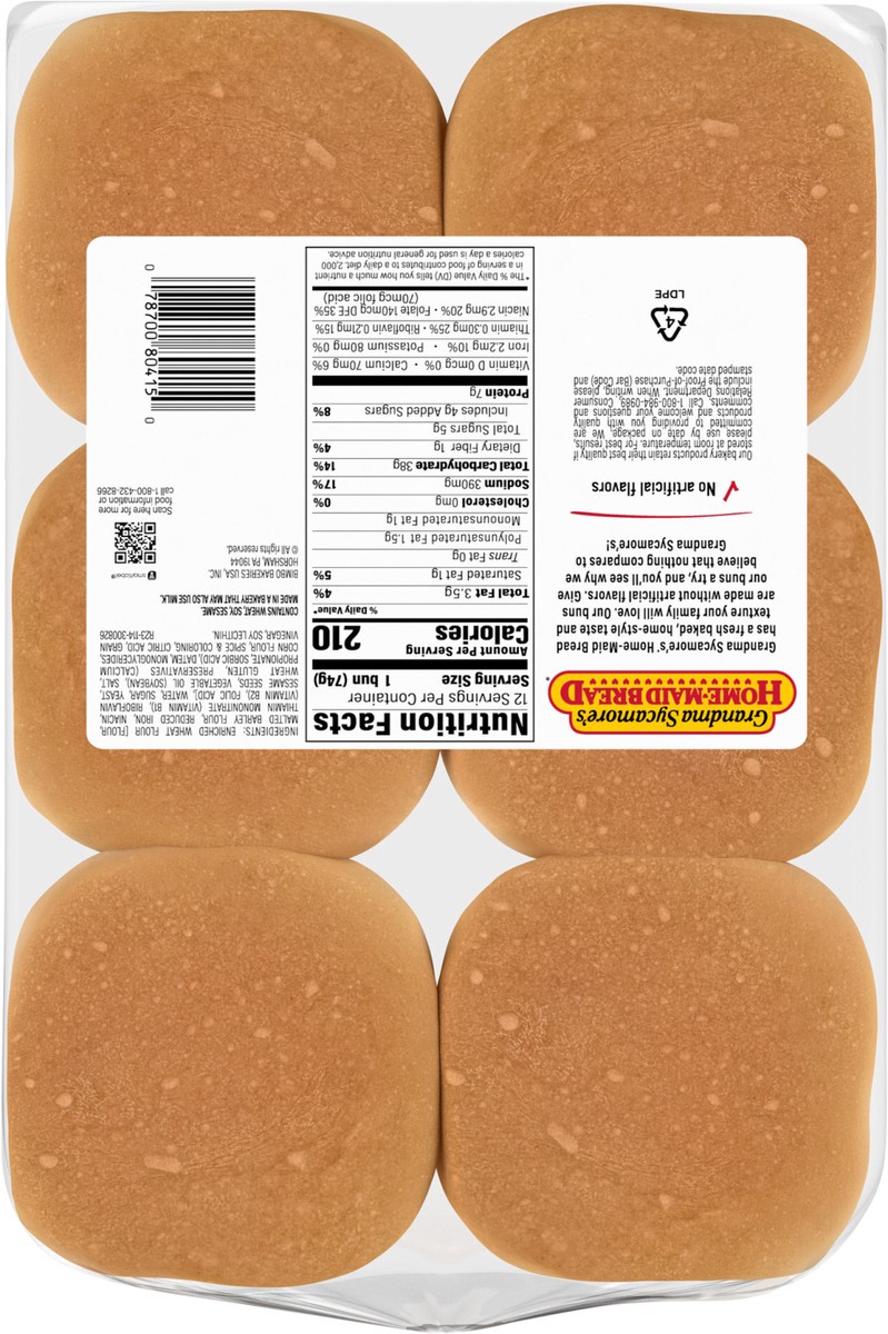 Grandma Sycamore's Home-Maid Bread Grandma Sycamore's Sesame Seeded (Club Pack) Hamburger Buns, 12 count, 31.5 oz