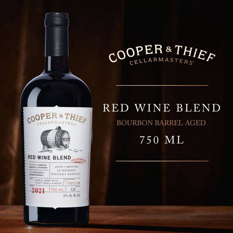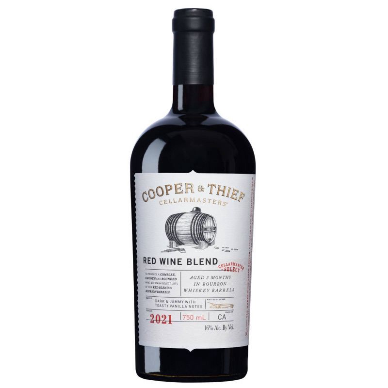- Cooper & Thief Cellarmasters Red Blend Red Wine has notes of warm, sweet oak, toasty vanilla, dark fruit with a hint of classic bourbon spice, finished with blackberry and jammy dark currants.