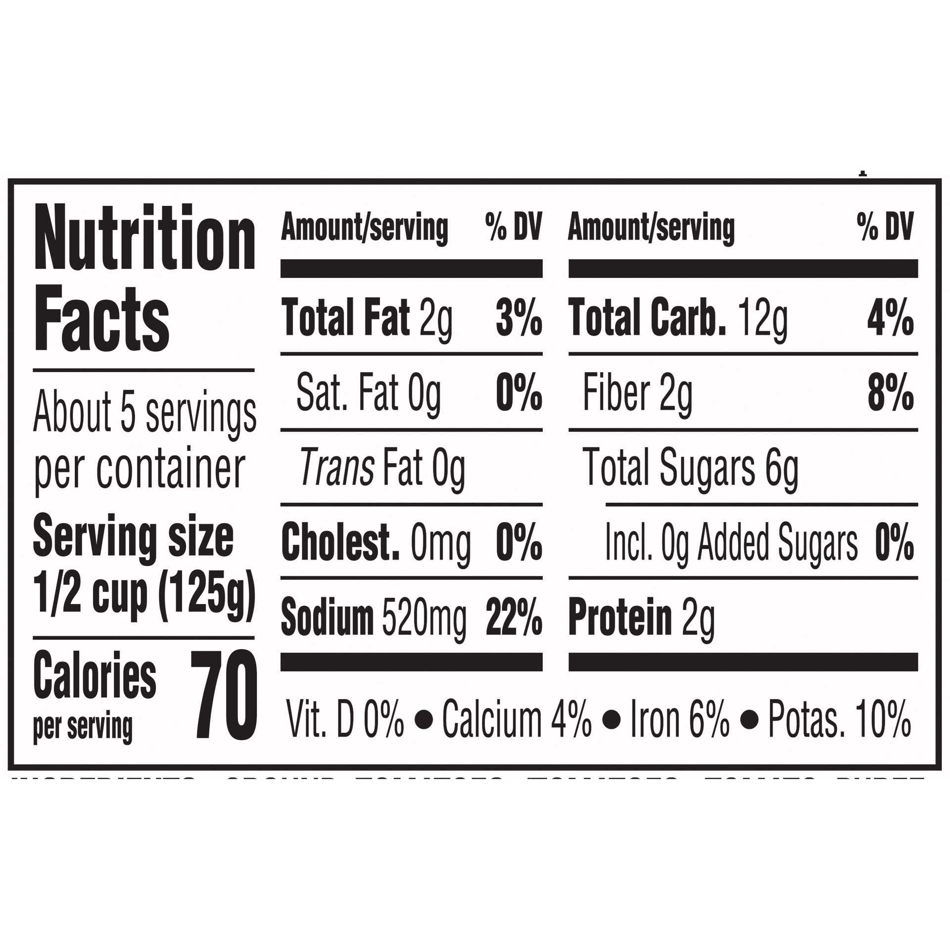 GROUND TOMATOES (TOMATOES, TOMATO PUREE, CITRIC ACID), ROASTED GARLIC, GARLIC, EXTRA VIRGIN OLIVE OIL, SEA SALT, SPICES.