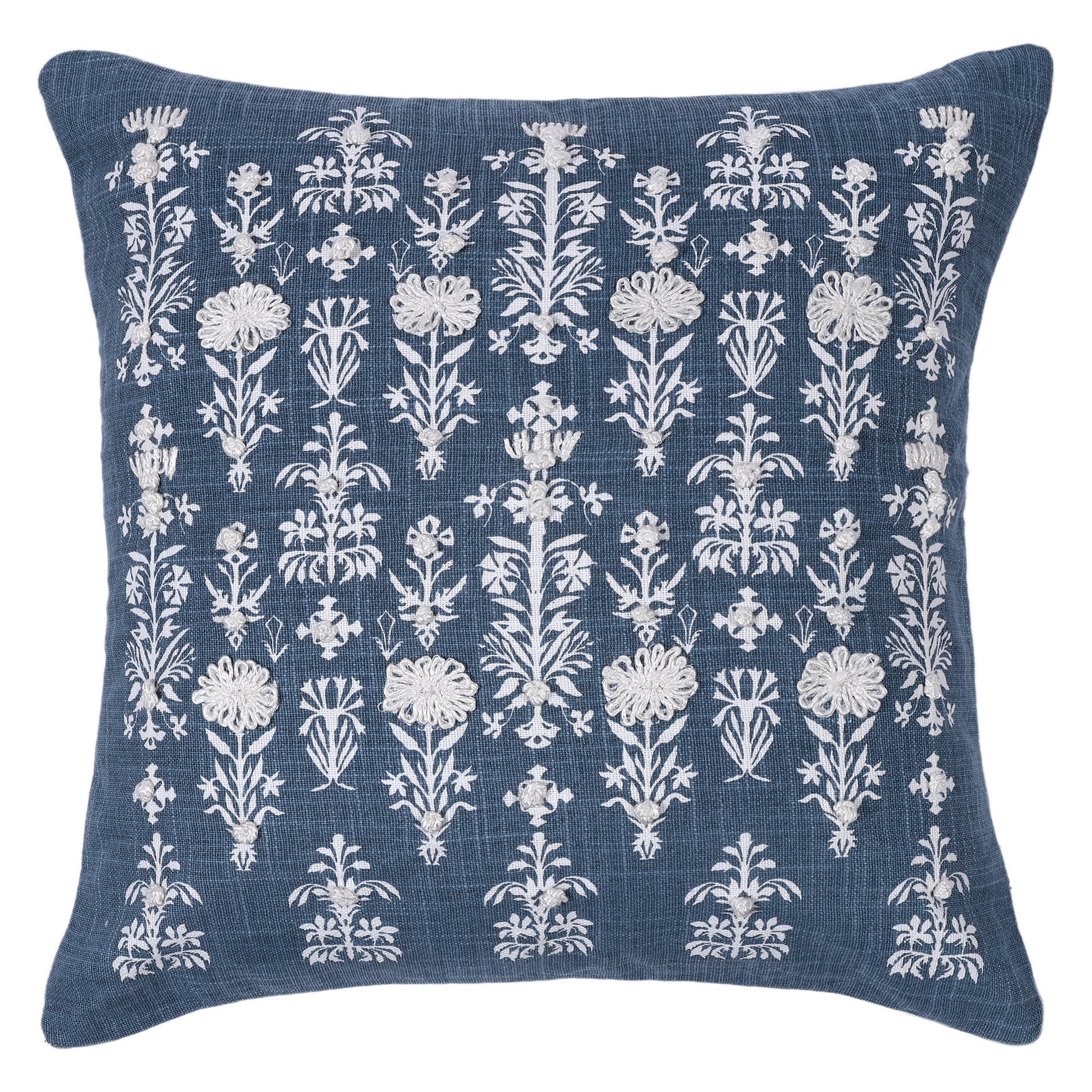 Haven & Key Floral Embroidered Decorative Throw Pillow - Blue