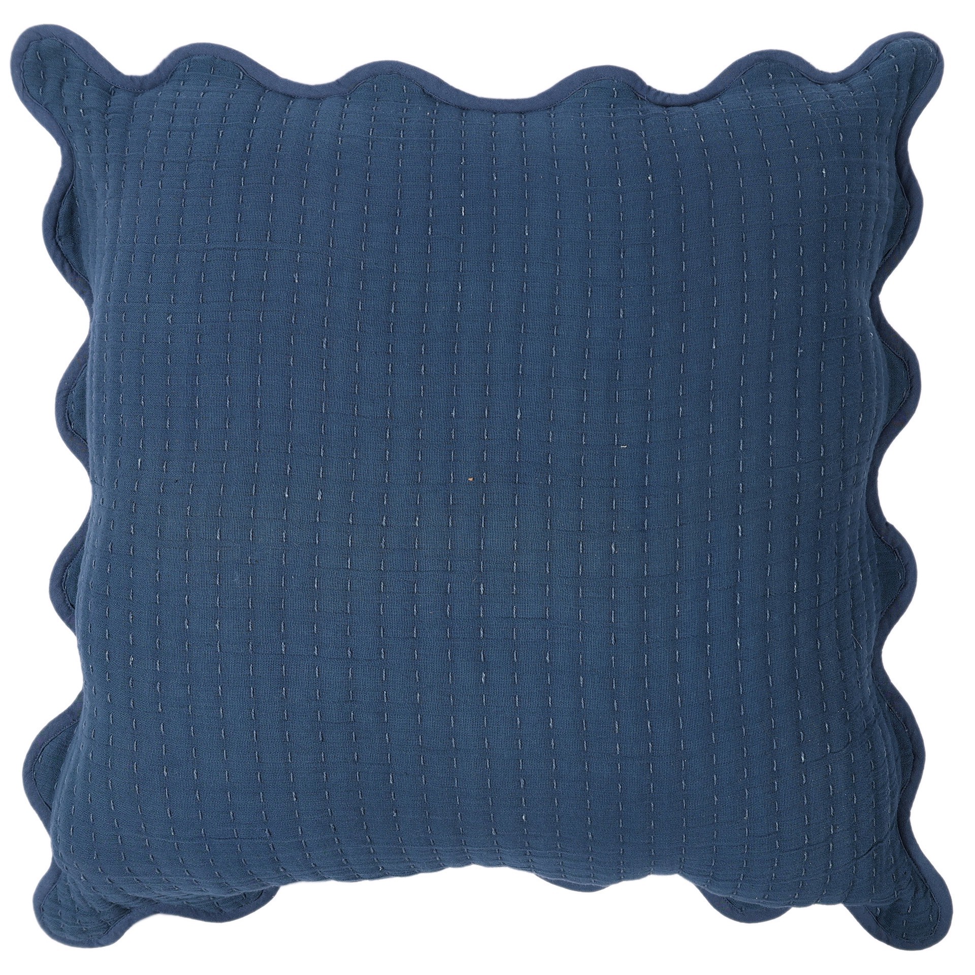 Haven + Key Kantha Muslin Decorative Throw Pillow with Scalloped Trim - Blue
