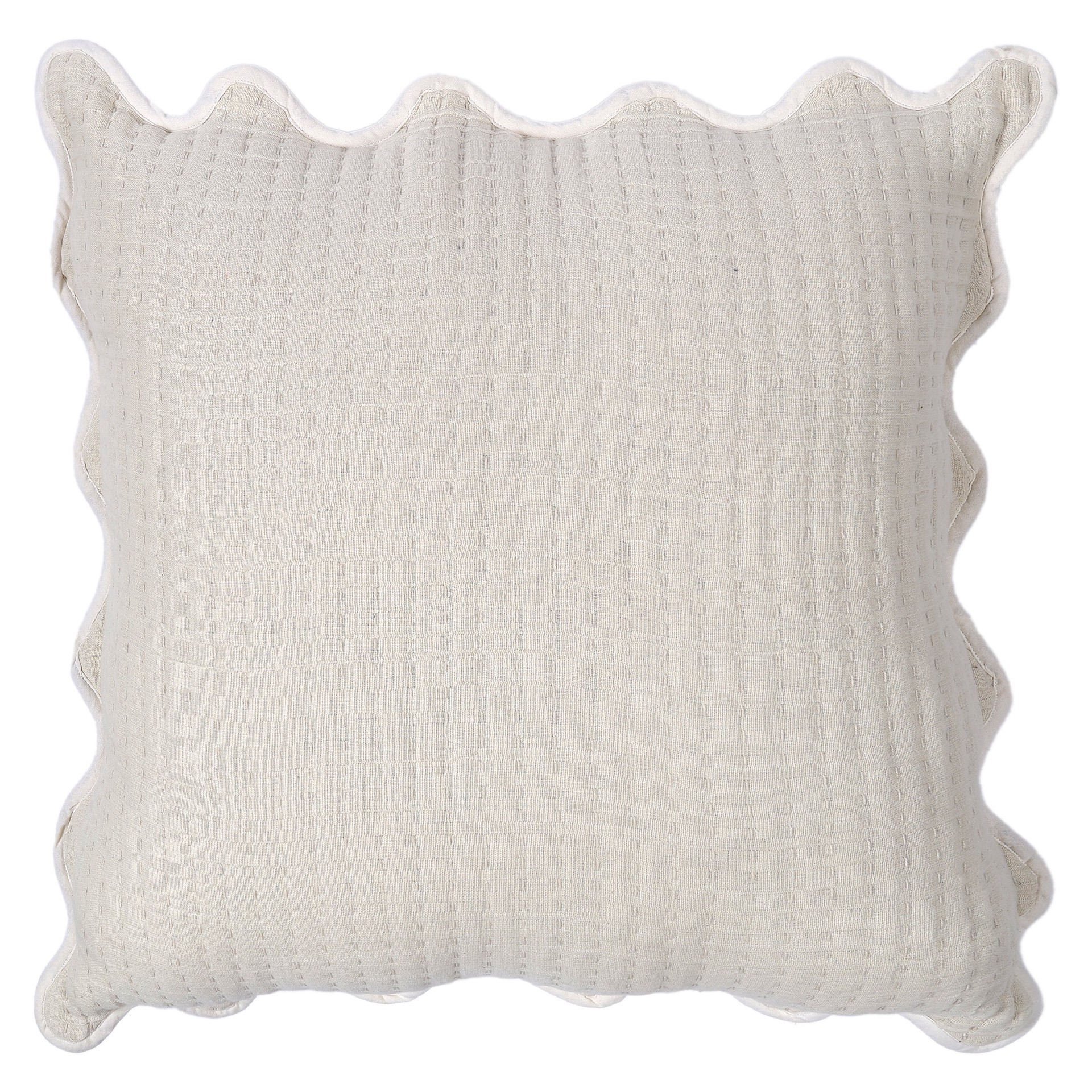 Haven + Key Kantha Muslin Decorative Throw Pillow with Scalloped Trim - White