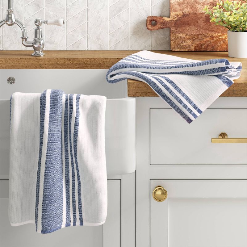 Breeze through your everyday kitchen tasks with the 2-Pack Cotton Striped Terry Kitchen Towels from Threshold™. Crafted from 100% terry cotton these striped kitchen towels are soft and absorbent, maki…