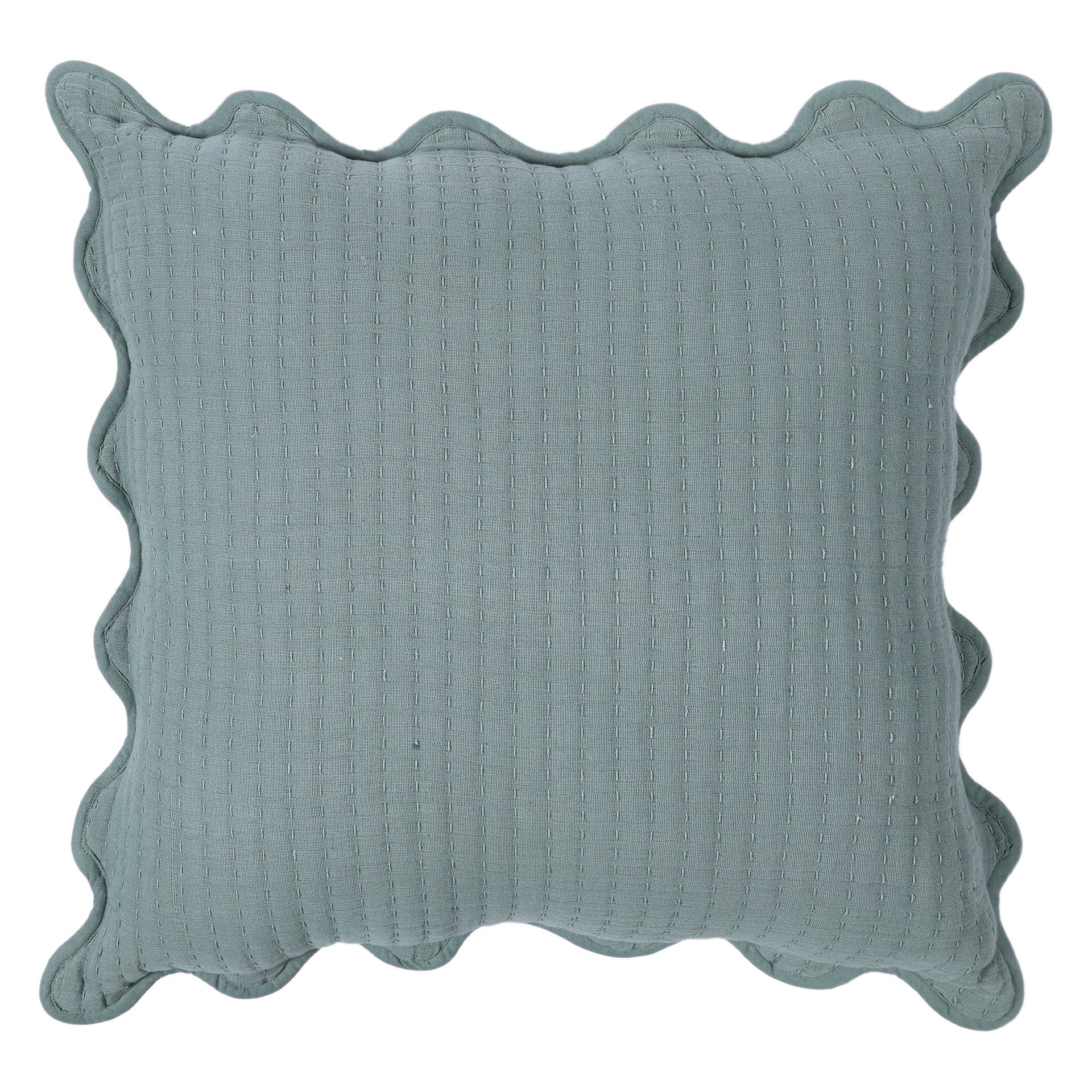 Haven + Key Kantha Muslin Decorative Throw Pillow with Scalloped Trim - Green