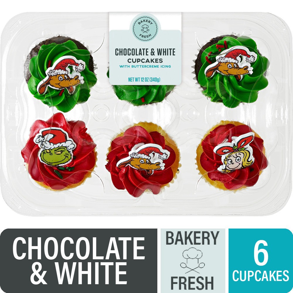 Bakery Fresh Chocolate & White Grinch Cupcakes put fun in every bite! Each package boasts chocolate & white cupcakes with velvety buttercreme icing. Kids' eyes light up at the fetching Grinch-themed, …