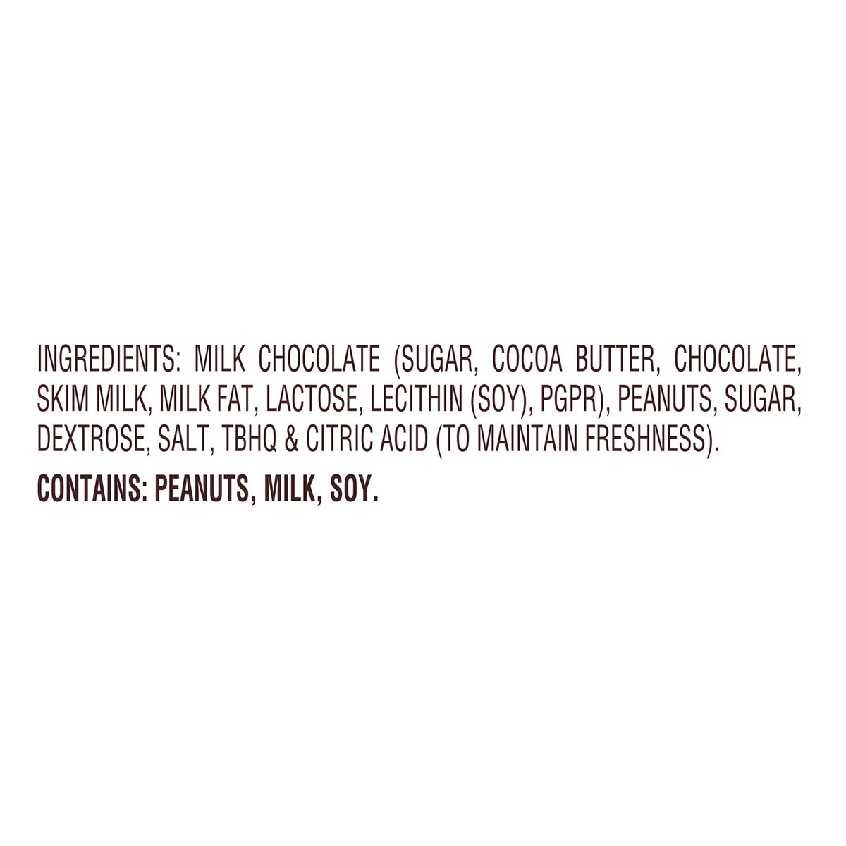 Milk Chocolate (Sugar, Cocoa Butter, Chocolate, Skim Milk, Milk Fat, Lactose, Lecithin (Soy), PGPR), Peanuts, Sugar, Dextrose, Salt, TBHQ & Citric Acid (to Maintain Freshness).