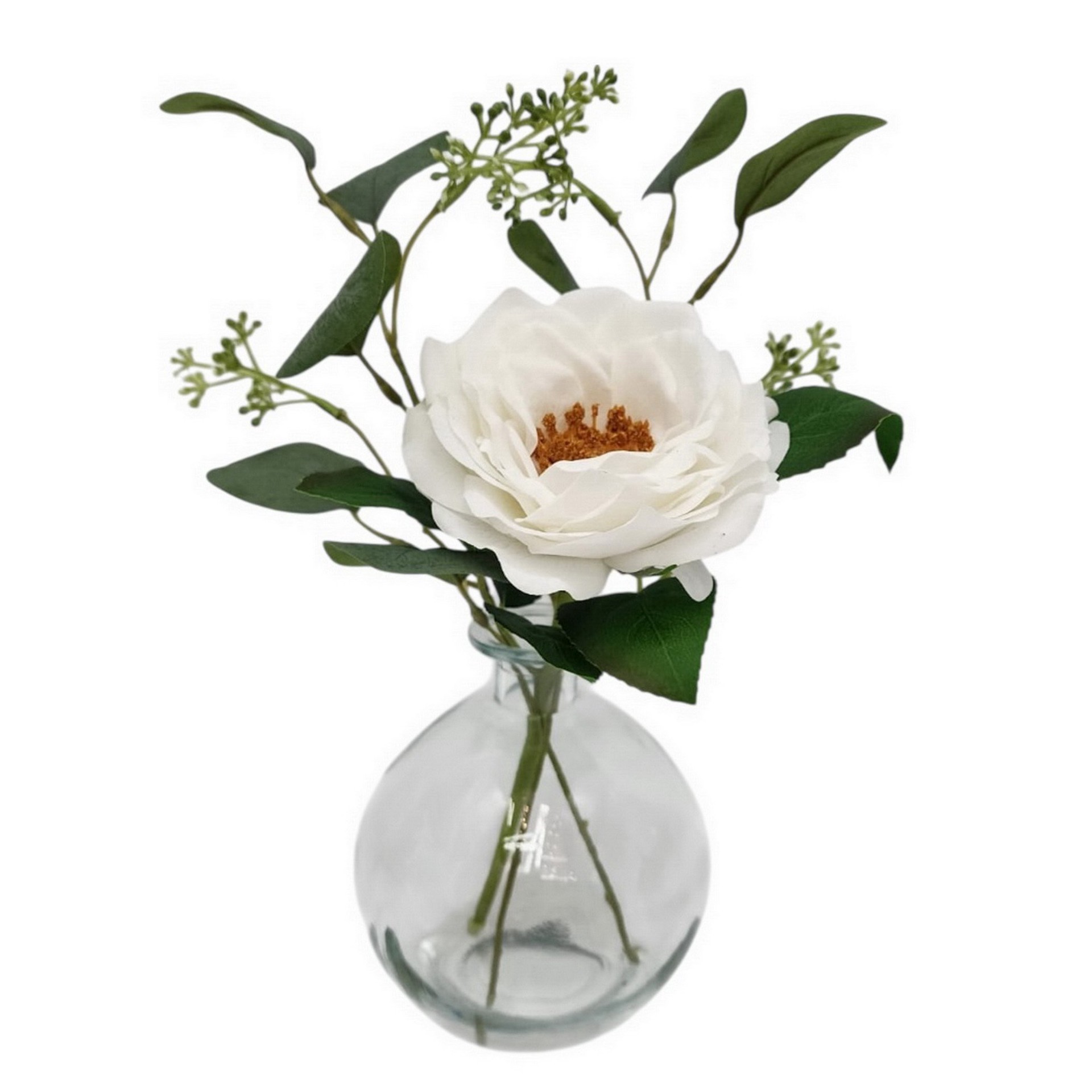 Haven + Key White Rose Faux Botanicals in Clear Vase