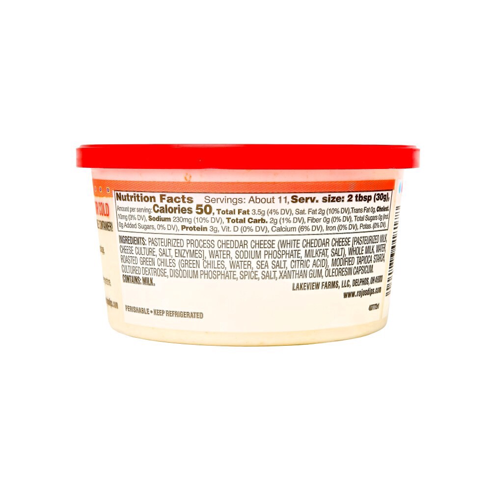 PASTEURIZED PROCESS CHEDDAR CHEESE (WHITE CHEDDAR CHEESE [PASTEURIZED MILK, CHEESE CULTURE, SALT, ENZYMES], WATER, SODIUM PHOSPHATE, MILKFAT, SALT), WHOLE MILK, WATER, ROASTED GREEN CHILES (GREEN CHIL…