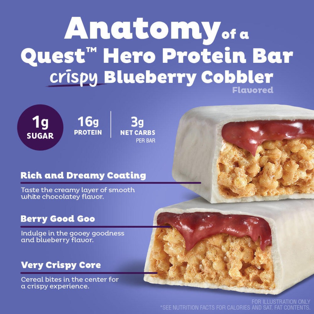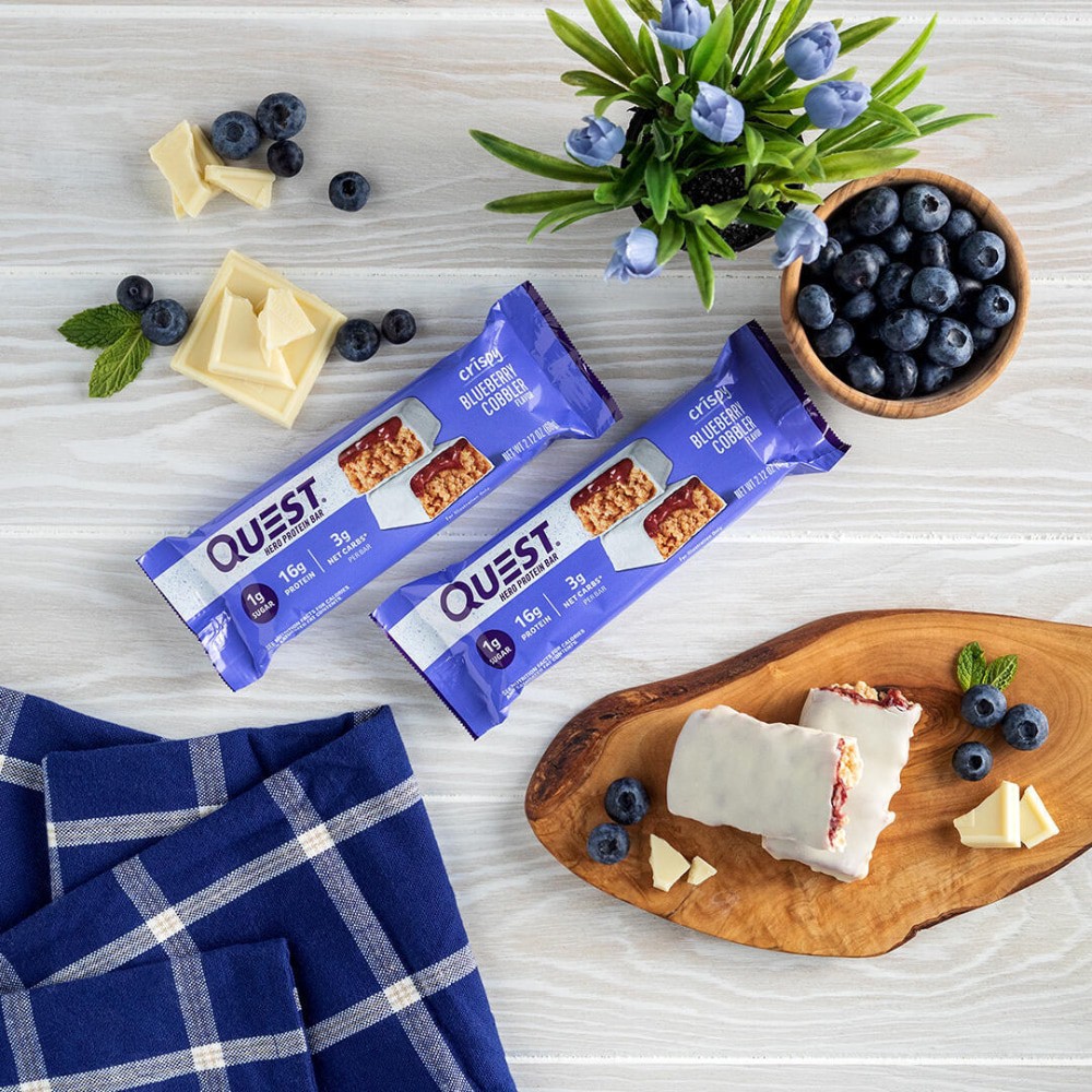 - FIBER IS YOUR FRIEND: The Quest Crispy Blueberry Cobbler Hero Protein Bars have 10g of fiber to provide your body with a more complete macro profile.