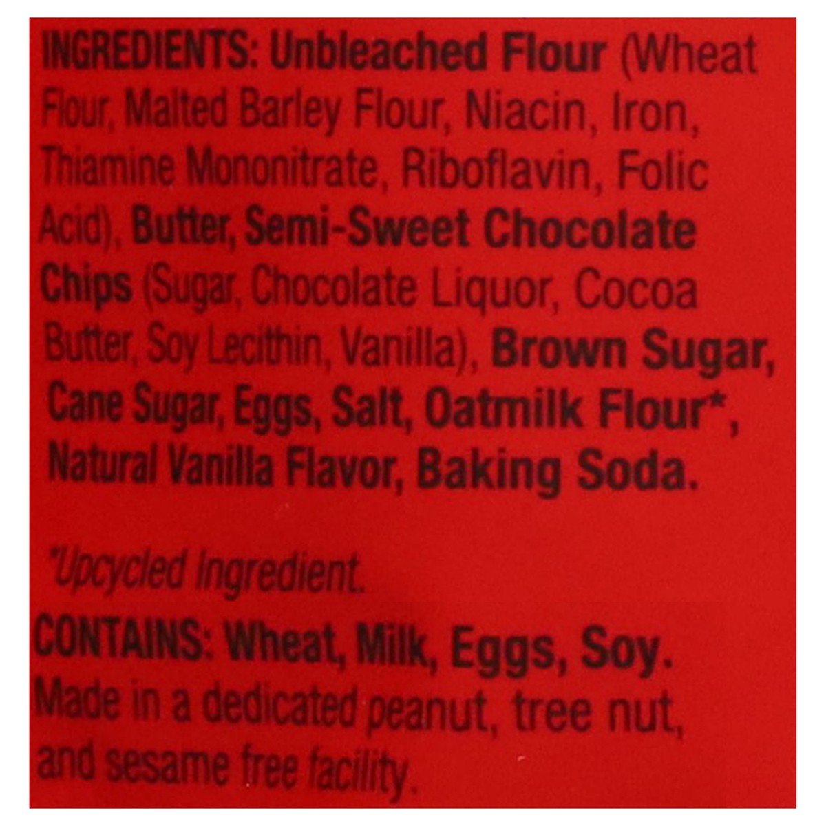 Unbleached Flour (Wheat Flour, Malted Barley Flour, Niacin, Iron, Thiamine Mononitrate, Riboflavin, Folic Acid), Butter, Semi-Sweet Chocolate Chips (Sugar, Chocolate Liquor, Cocoa Butter, Soy Lecithin…