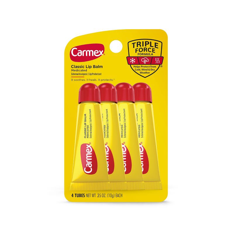 - One 4 pack (0.35 oz each) of Carmex Medicated Lip Balms