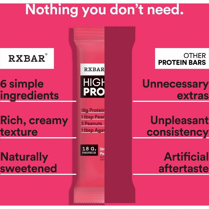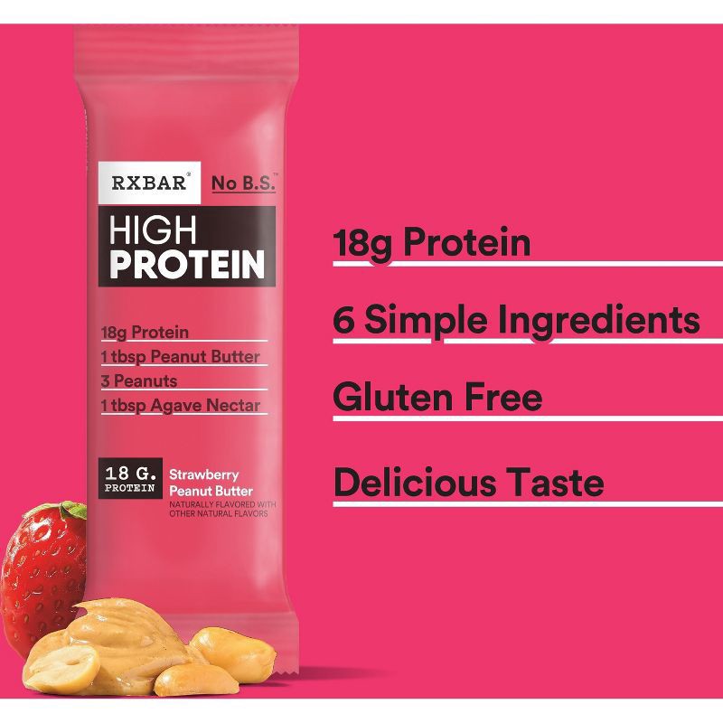 Bite into 18g of protein with an RXBAR High Protein Strawberry Peanut Butter bar. Made to help you feel your best throughout the day, each bar is an excellent source of protein and is crafted with 6 sā¦