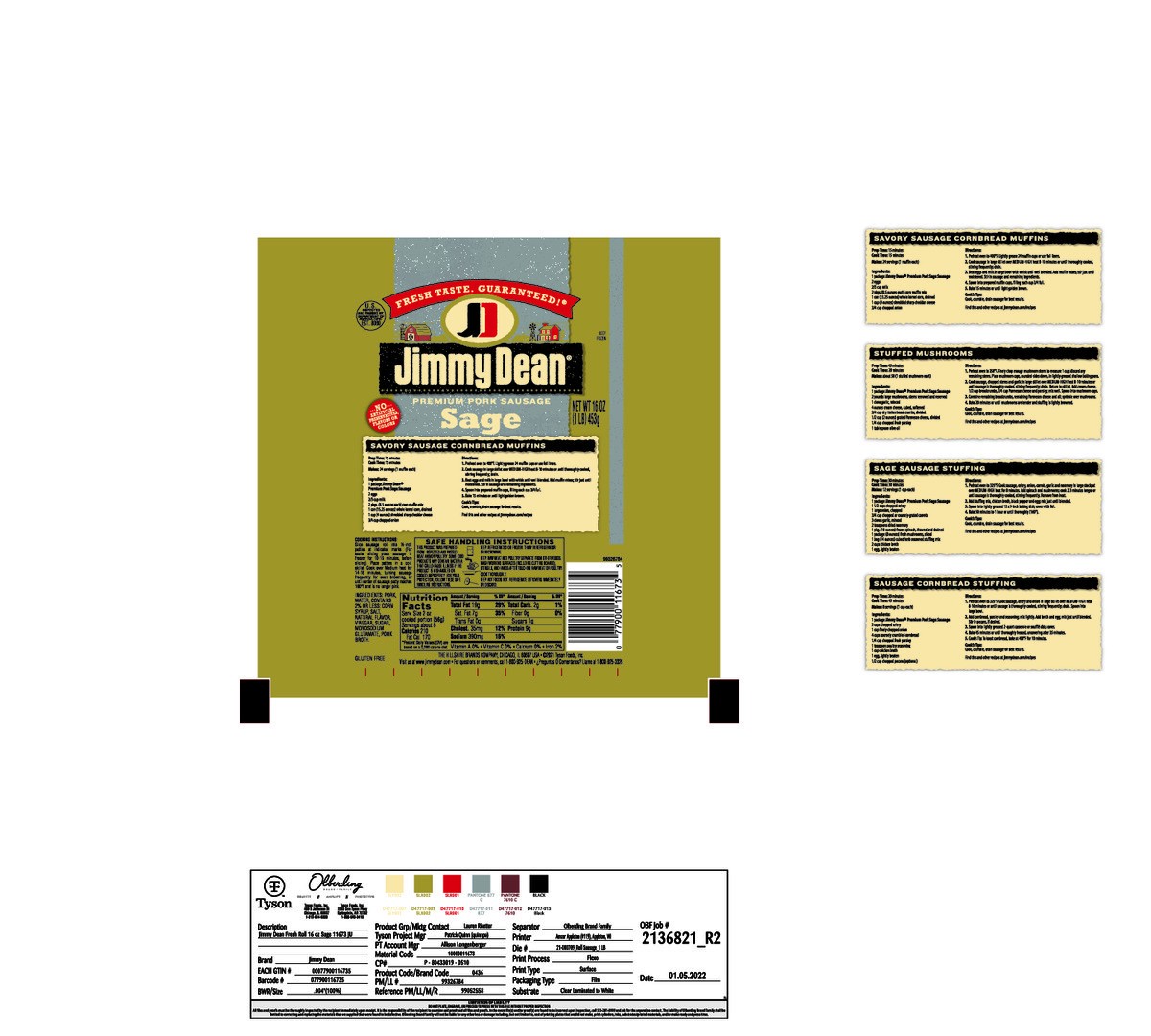 Jimmy Dean Sausage Roll Sage - 16 Oz