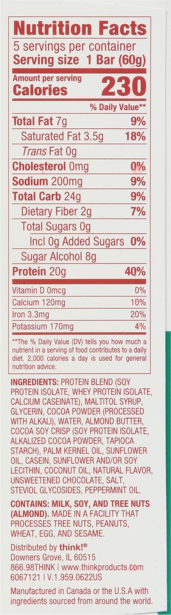 think! High Protein Thin Mints Protein Bar 5 - 2.1 oz Bars