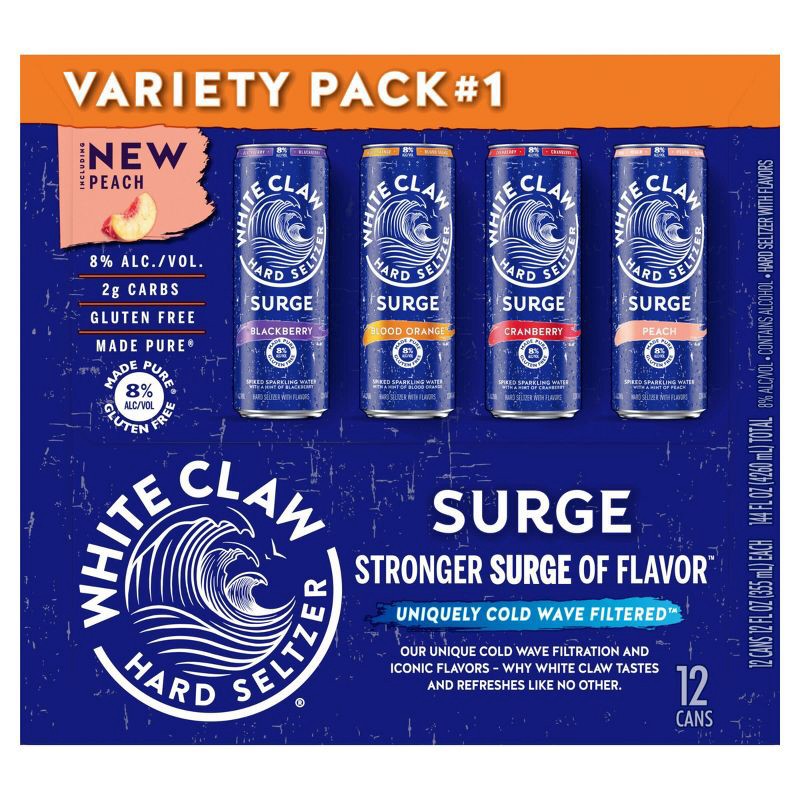 White Claw® Hard Seltzer Surge Variety Pack 1 brings a bolder wave of refreshment to the original hard seltzer experience. With 8% alc./vol. and the brand's signature clean, crisp taste, it's made for…