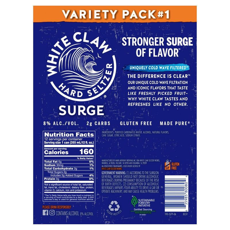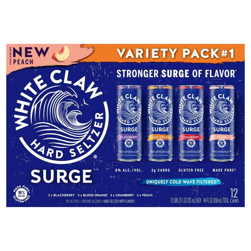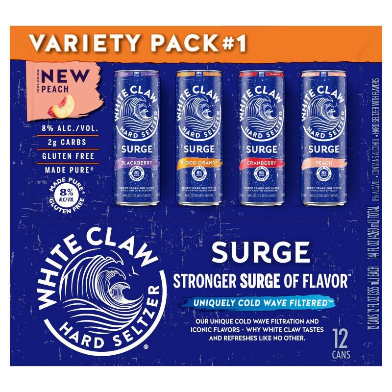 White Claw® Hard Seltzer Surge Variety Pack 1 brings a bolder wave of refreshment to the original hard seltzer experience. With 8% alc./vol. and the brand's signature clean, crisp taste, it's made for…