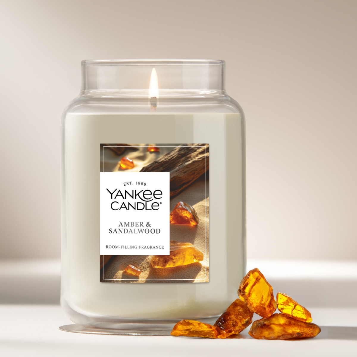 Yankee Candle Large Jar Scented Candle with up to 150 Hour Burn Time, Premium Plant Wax Blend for Consistent Burn, 22 oz Jar Candle with Room Filling Fragrance, Amber & Sandalwood