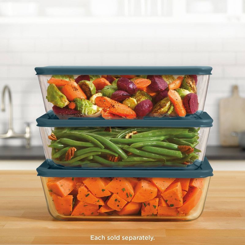 This 11-cup rectangular container with plastic lid is the perfect size, whether you're prepping for a family-size meal, or need a jumbo container for leftovers. The durable glass container has a secur…