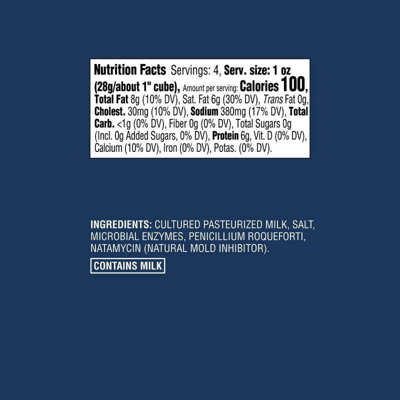 CULTURED PASTEURIZED MILK, SALT, MICROBIAL ENZYMES, PENICILLIUM ROQUEFORTI, NATAMYCIN (NATURAL MOLD INHIBITOR).