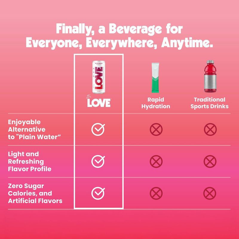 Hydrate with Be LOVE™ – a crisp, clean, lightly-flavored electrolyte drink made for anytime hydration. With zero calories, zero sugar, zero caffeine, and no artificial ingredients or dyes, this non-sp…